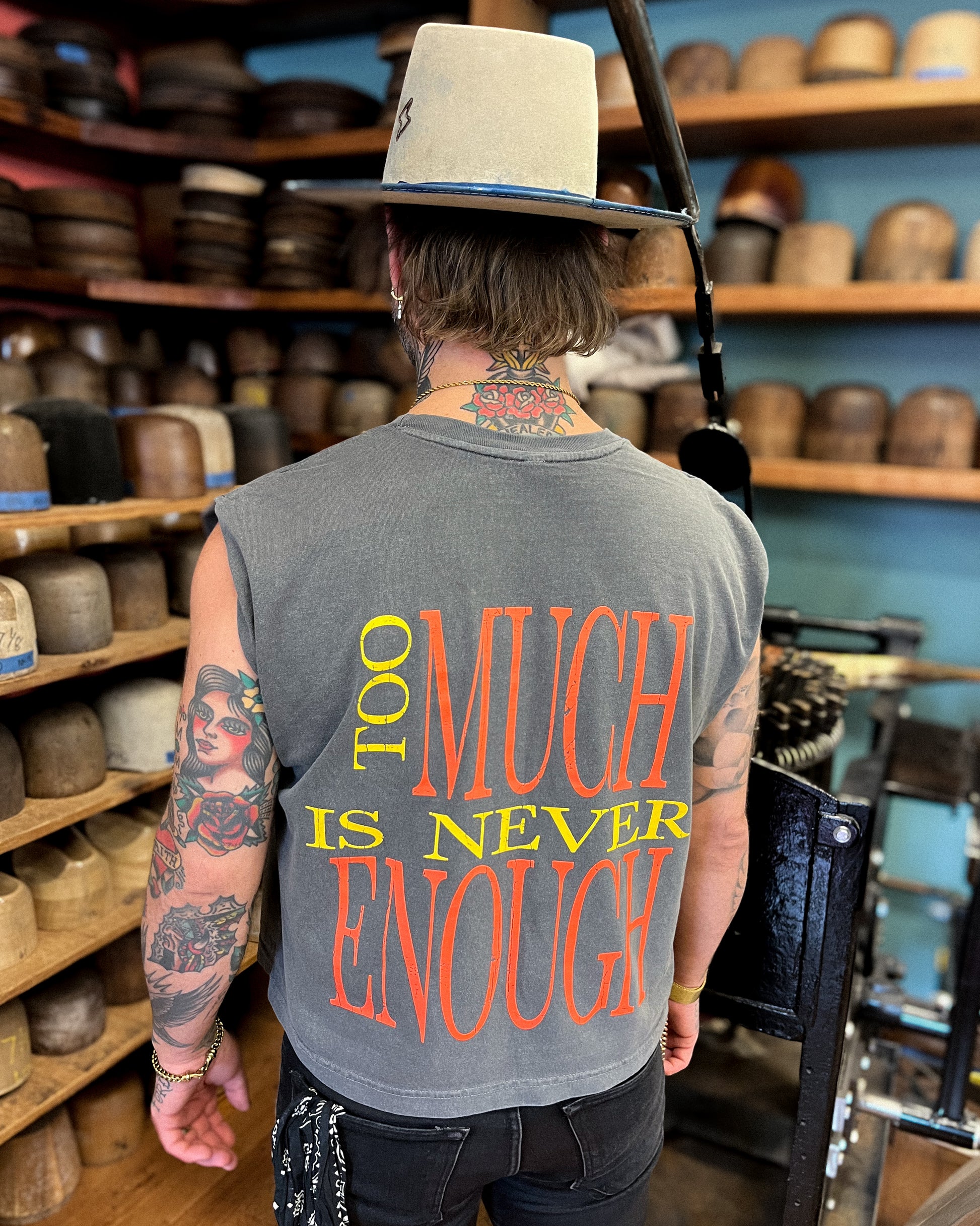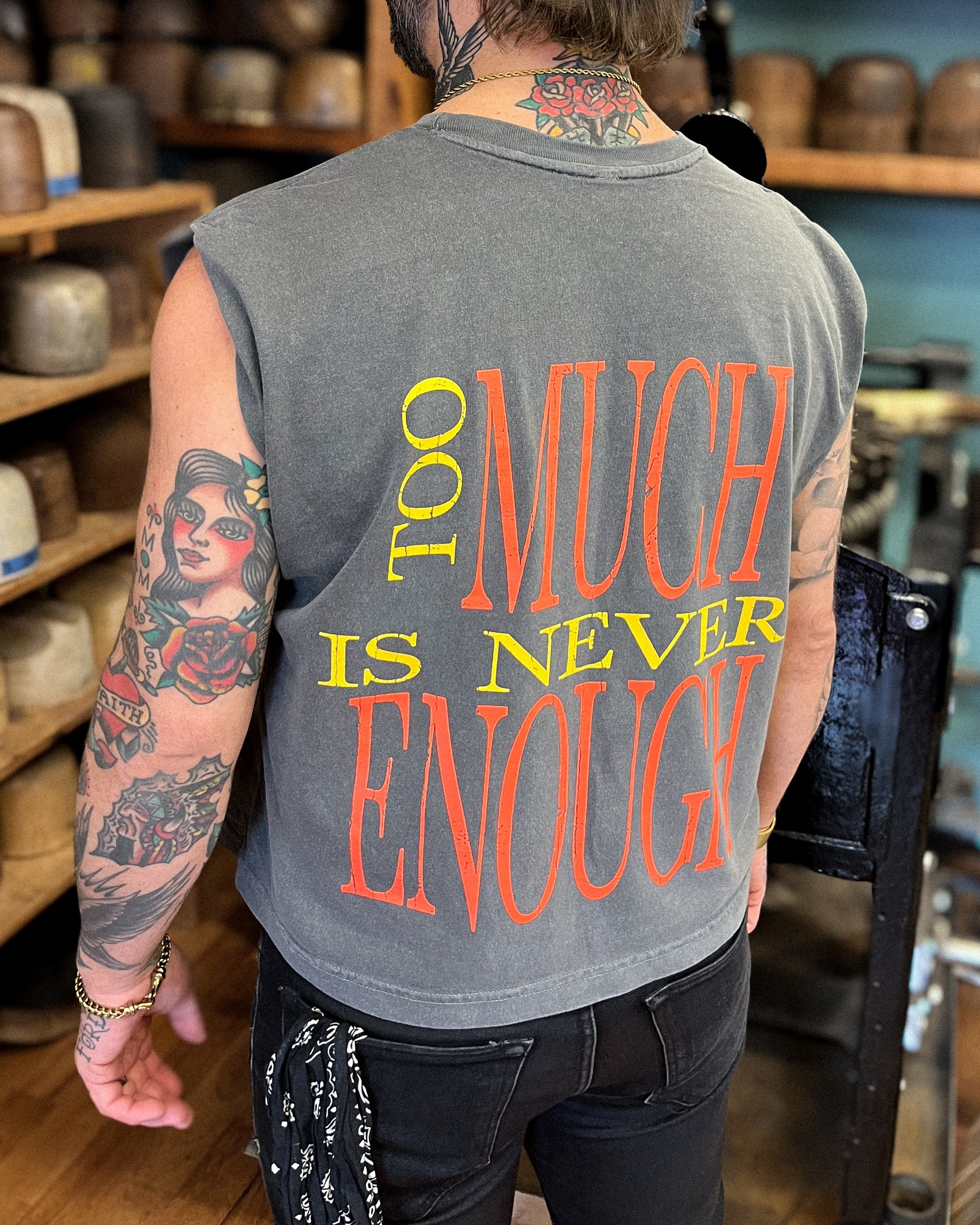 Daniel silhouette. More Power. More Pain. Front design and back print is Too Much Is Never Enough.